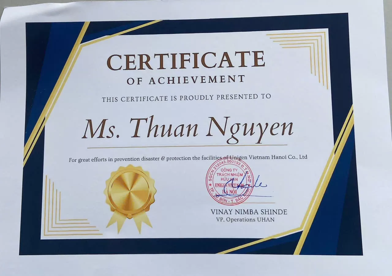 Ban lãnh đạo Công Ty TNHH Unigen Việt Nam xin trân trọng ghi nhận và gửi lời khen thưởng tới toàn thể đội ngũ bảo vệ của TRƯỜNG THÀNH TISTCO vì tinh thần trách nhiệm và sự tận tụy không mệt mỏi trong công tác khắc phục hậu quả bão Yagi. Những nỗ lực và đóng góp này không chỉ góp phần đảm bảo an toàn cho mọi người mà còn thể hiện tinh thần trách nhiệm, đoàn kết chung sức vượt qua khó khăn của TRƯỜNG THÀNH TISTCO với tập thể Công ty TNHH Unigen Việt Nam.